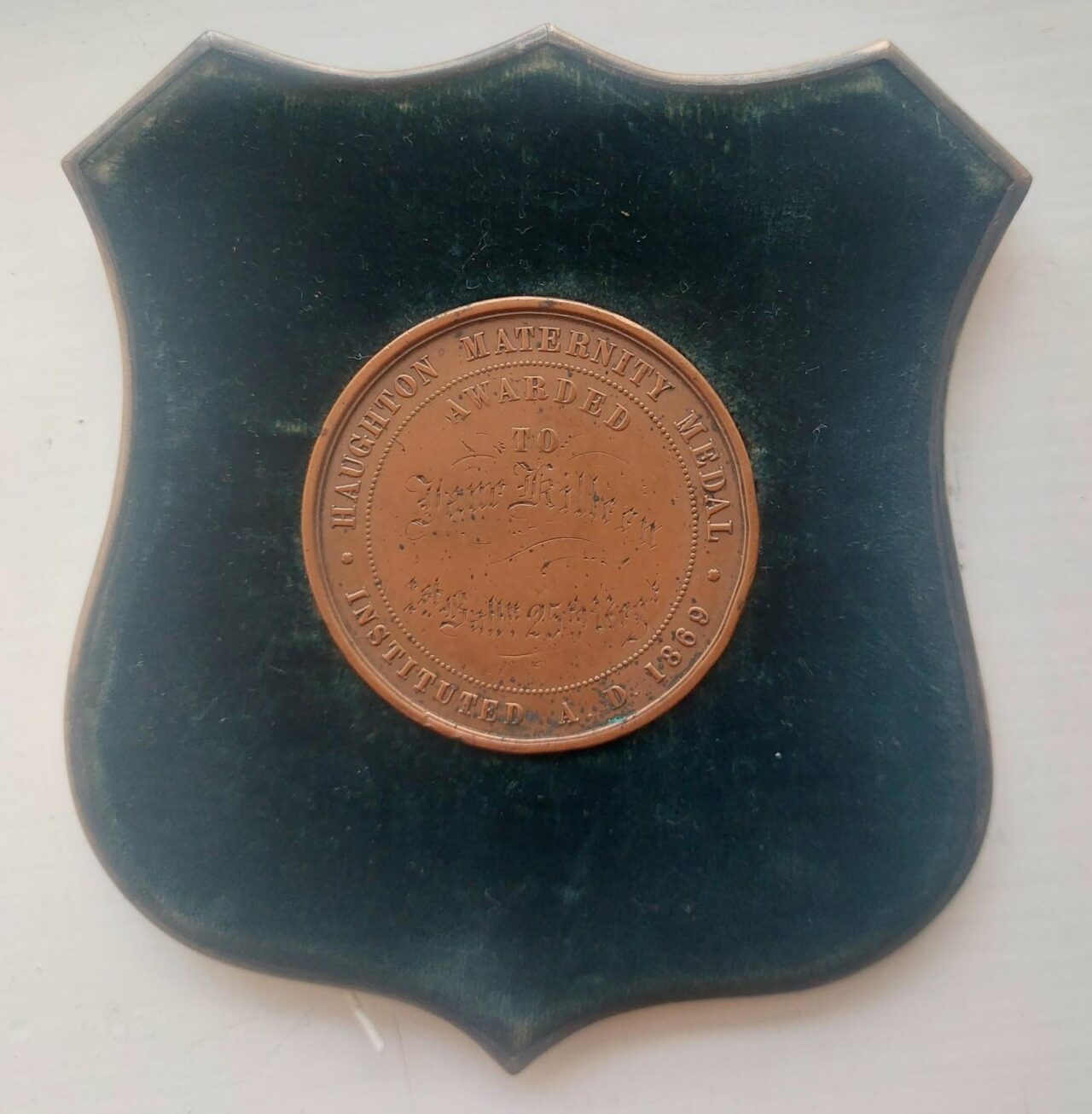 A recent find within the museum stores has been a Victorian medal awarded to a woman for her services with 1st Battalion, 25th Regiment The King’s Own Borderers. The woman’s name was Jane Killeen and the medal was given to her some time in the latter half of the 19th Century for her skills in midwifery. The medal is the Haughton Maternity Medal and was awarded only to army midwives who showed particular promise and ability. In 1869, a course had been established for the training of soldiers’ wives in midwifery, presumably to deliver the babies of women married to officers and other ranks of the regiment. Women who applied for the course needed to have a reasonably good level of education and experience to begin with, although perhaps having already birthed their own child counted as relevant experience, and they needed to be already connected to the regiment, usually through marriage. The training then took place at Sir Patrick Duns Hospital in Dublin, with Duns having served as a surgeon in The Royal Scots during the 1840s and being witness to the “grievous want of trained midwives in regiments at home and abroad”. By 1874, over 200 women had been trained as part of this initiative, with Duns being awarded a knighthood for his efforts and the best of the newly fledged midwives being awarded medals.